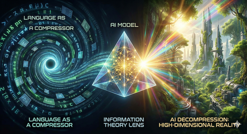 Language is, in essence, a high-ratio compressor performing ‘lossy encoding’ on the physical world. It collapses infinite concrete details—such as lighting and physical laws—and complex abstract logic into concise symbols. While this extreme compression offers convenience, it results in ‘inefficient’ communication due to the massive loss of context; the recipient (whether human or AI) must incur a significant cognitive cost to ‘decompress’ the message and fill in the voids.
